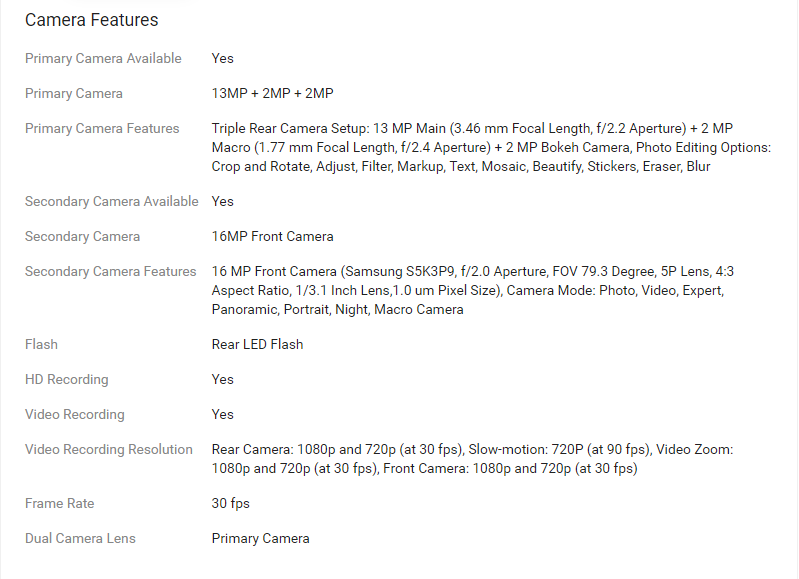 13MP + 2MP + 2MP | 16MP Front Camera