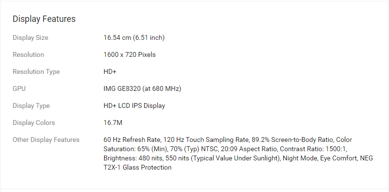 16.54 cm (6.51 inch) HD+ Display